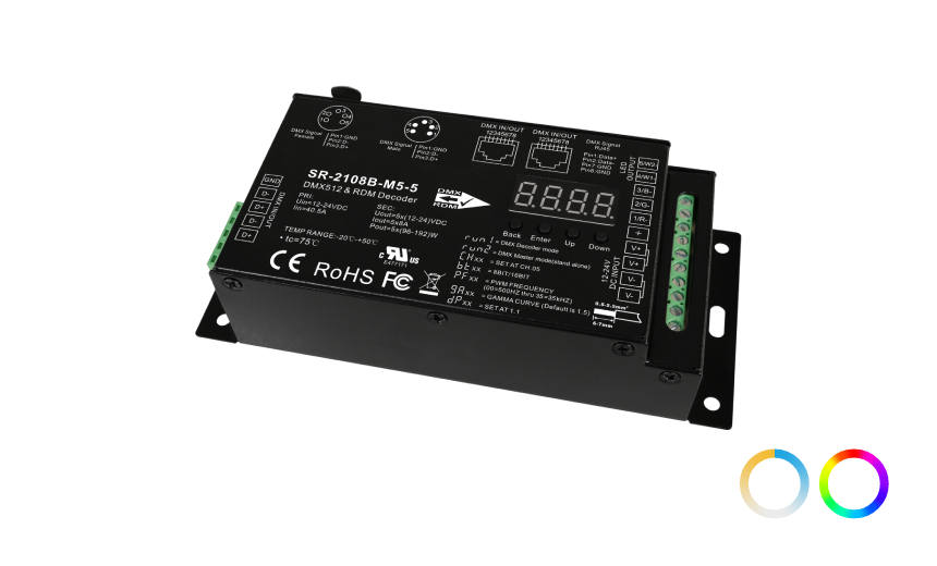 金屬外殼,四位數(shù)碼管,可輕松配置產(chǎn)品各項(xiàng)參數(shù),可手動(dòng)設(shè)置DMX地址,并在顯示屏上顯示