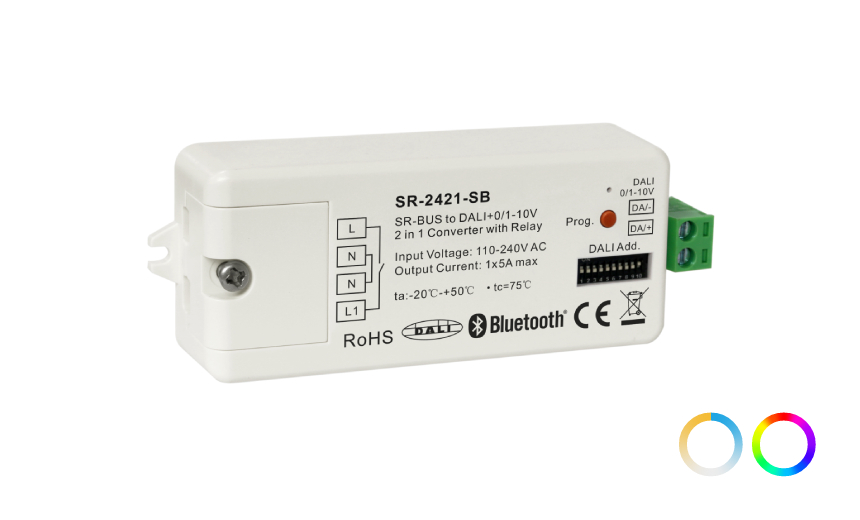 | RF+藍牙 | 110-240VAC | 最大5A | DALI或0/1-10V | 2.4G | 95×37×20mm |