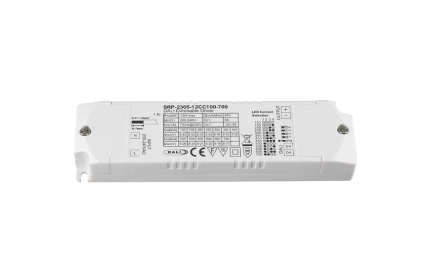 | DALI | 單通道 | 6-52V | 100mA-700mA撥碼選擇,每50mA一檔 | 200-240V | 12W | >0.95 | 135*35*20mm(長*寬*高) |