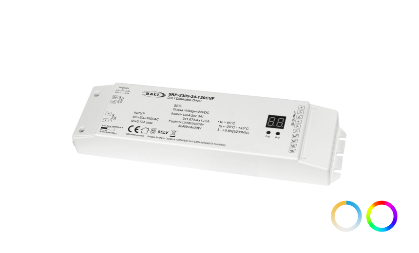 | DALI | 4通道 | 24V | 最大5A | 200-240V | 120W | >0.95 |