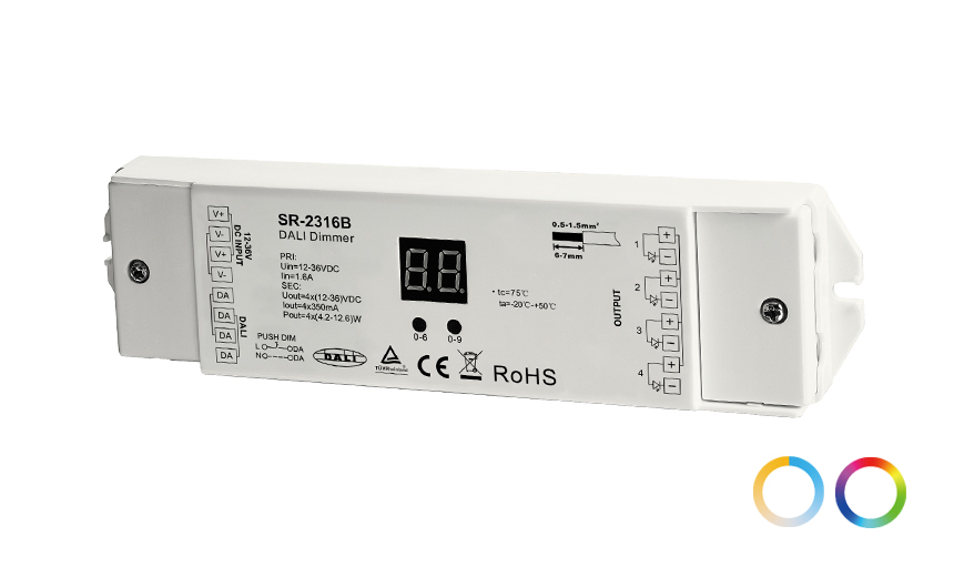 | DALI信號 | 12-36VDC | 350mA | 16.8-67.2W | 4通道 | 178*46*22mm |